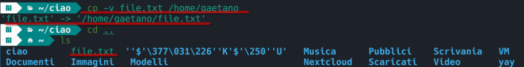 L’output del comando non è però “parlante” quindi per sapere se l’operazione è stata eseguita con successo bisogna verificare, ad esempio con ls. Per questo motivo consiglio di utilizzare l’opzione verbose per avere un print dell’operazione eseguita.
