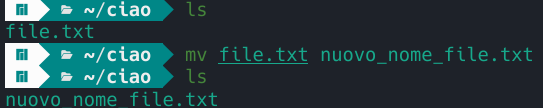 Per eseguire il comando di rinomina invece, l’origine e la destinazione coincidono ma con nomi diversi, ad esempio: