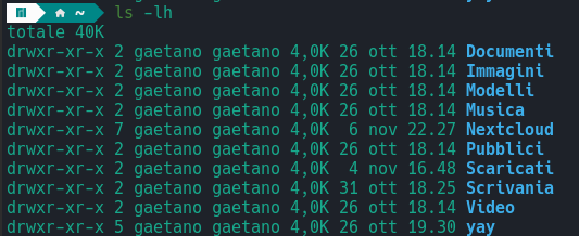 Documenti Immagini Modelli Musica Nextcloud Pubblici Scaricati Scrivania Video yay